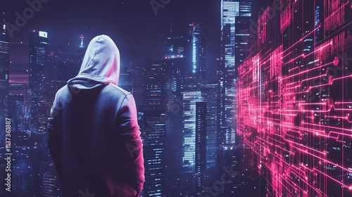 Hacker are planning to hack and attack networks and cyber security , innovative Smart city and graphs with statistics to analyze business potential and predict future developments in company growth.