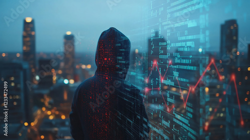Hacker are planning to hack and attack networks and cyber security , innovative Smart city and graphs with statistics to analyze business potential and predict future developments in company growth.