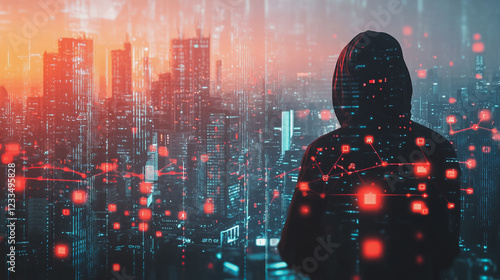 Hacker are planning to hack and attack networks and cyber security systems Smart digital city with connection cyber security network reciprocity over the cityscape . future smart wireless digital city