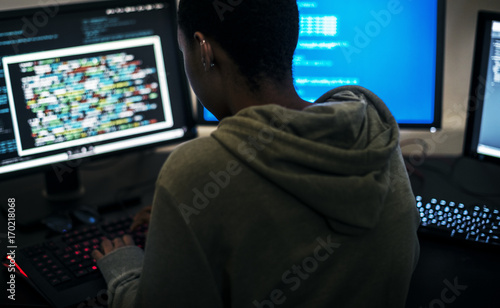 Hacker man working on computer