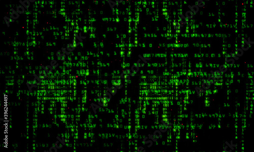 Hacker style green matrix numerals abstract background.