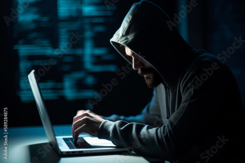Hacker with black hoodie is making a cybercrime