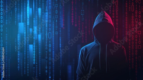 Hacking concept. Hacker with binary code digital interface background.