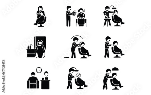 Hair salon process icon set