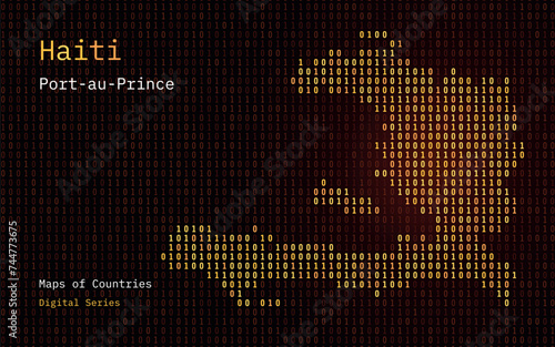 Haiti Map Shown in Binary Code Pattern. Matrix numbers, zero, one. World Countries Vector Maps. Digital Series