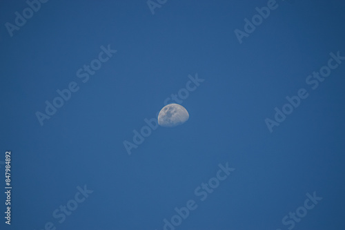Half moon on blue sky background.