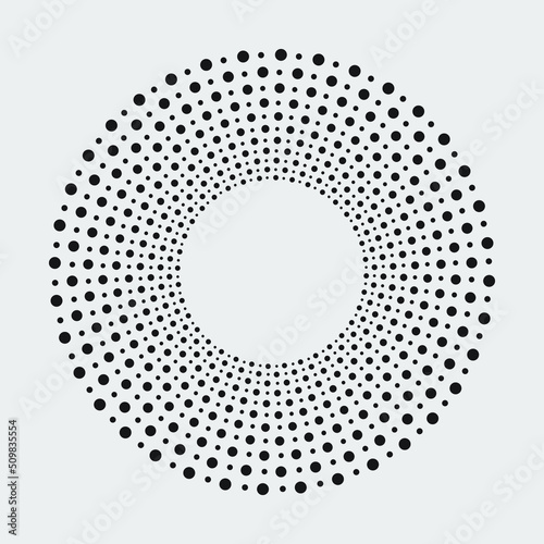 Halftone design element. Abstract background. Dotted round logo. Halftone swirl object. Halftone dots circle texture, pattern, object. Vector art illustration.