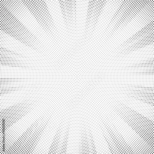 Halftone gradient sun rays pattern. abstract halftone vector dots background. monochrome dots pattern. pop art, comic small dots. star rays halftone poster. shine, explosion. sunrise rays background.