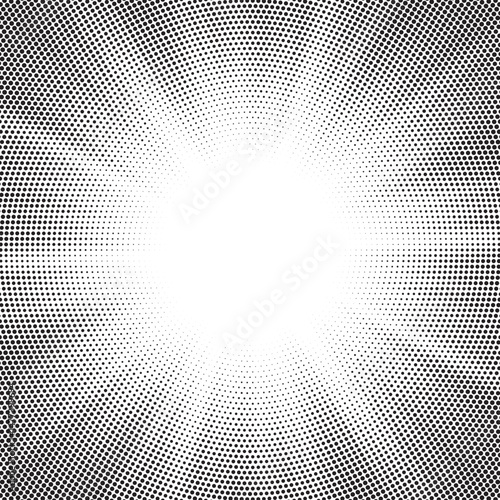 Halftone gradient sun rays pattern. Abstract halftone vector dots background. monochrome dots pattern. Vector background in comic book style with sunburst rays and halftone. Retro pop art design.