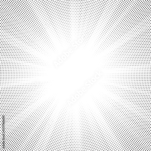Halftone gradient sun rays pattern. Abstract halftone vector dots background. monochrome dots pattern. Vector background in comic book style with sunburst rays and halftone. Retro pop art design.