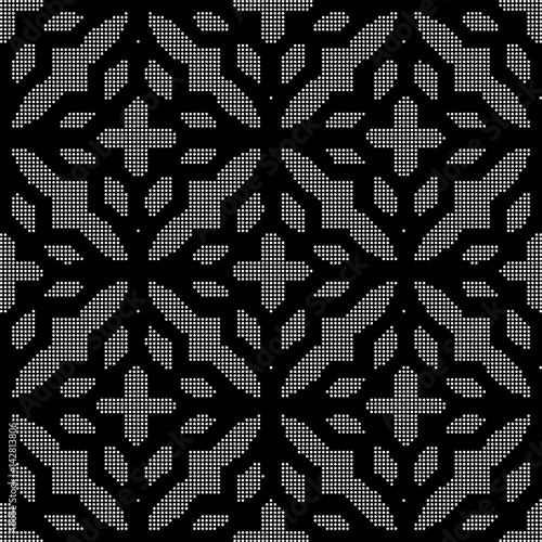 Halftone round black seamless background polygon cross geometry