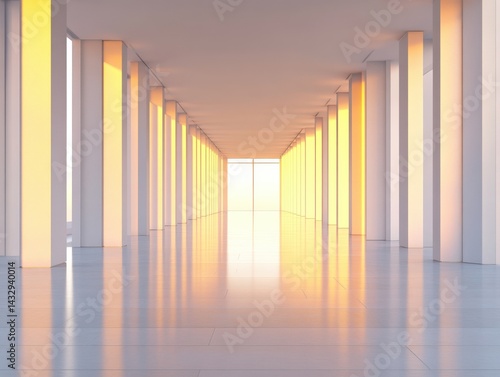 Hallway with bright sunlight shining through columns