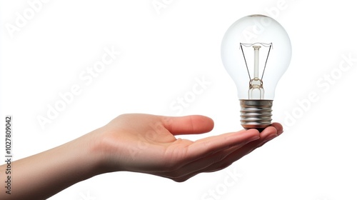 Hand and lightbulb together with a bright white backdrop, ideal for adding your message or concept text