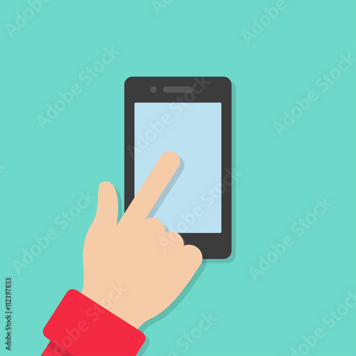 Hand and phone isolated on background. Vector icon