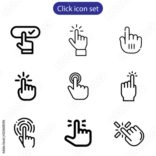 Hand cursor icon set. click icon vector. hand click. pointer vector art illustration on white background use for web and app design.