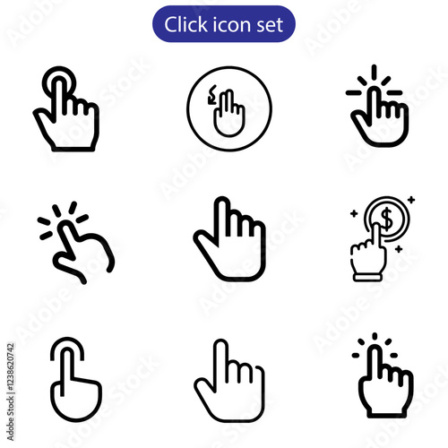 Hand cursor icon set. click icon vector. hand click. pointer vector art illustration on white background use for web and app design.