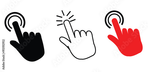 Hand cursor icon set. hand click pointer. Clicking finger icon. Computer mouse click set. click icon vector.