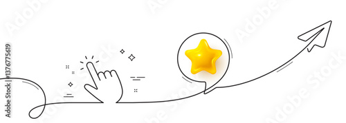 Hand cursor line icon. Continuous line with share plane. Click action sign. Finger pointer symbol. 3d star in speech bubble. Cursor single line ribbon. Loop curve pattern. Vector