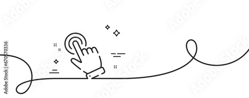 Hand cursor line icon. Continuous one line with curl. Click action sign. Finger pointer symbol. Cursor single outline ribbon. Loop curve pattern. Vector