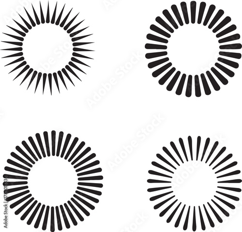 Hand Drawn Black Design Elements, Circle Design Elements Vector, Linear Drawing, Vintage Retro Style on Background