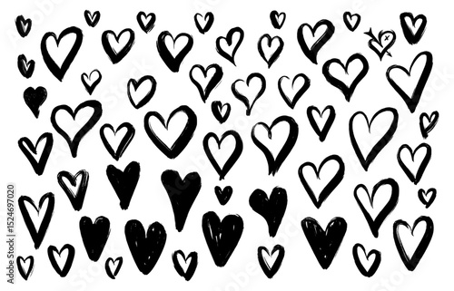 Hand Drawn black Hearts Pattern - Doodle Love Background