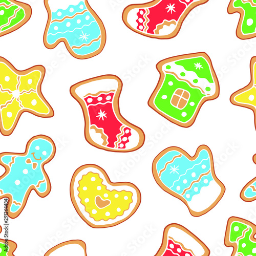 Hand drawn christmas cookies seamless pattern. Gingerbread. Vector illustration. Design for fabric, textile, wrapping paper, greeting card.