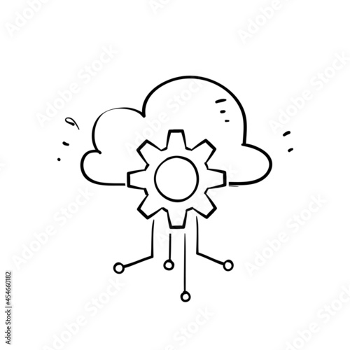 hand drawn doodle cloud gear circuit illustration vector isolated