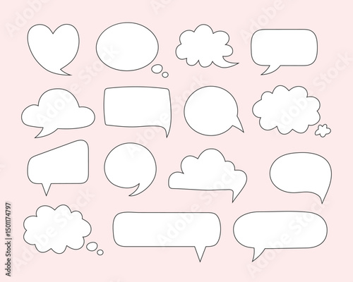 Hand drawn empty speech bubble collection.