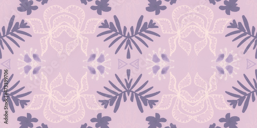 Hand drawn floral ethnic pattern. Seamless abstract batik print.