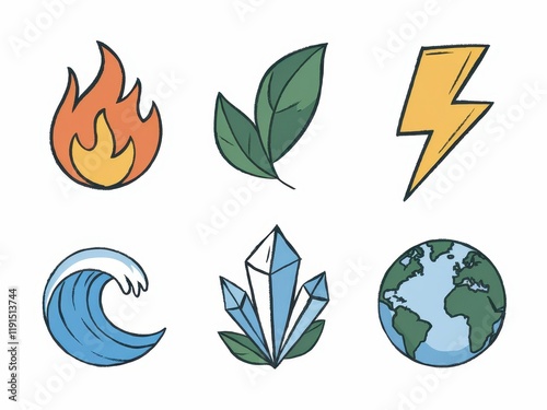 Hand Drawn Icons Representing Natural Elements
