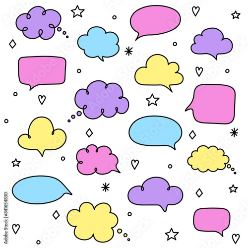 Hand drawn speech bubble box set. Doodle style icons. Vector illustration