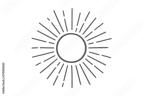 Hand drawn sunburst vector doodle. Vintage retro sunshine sketch. Sunbeam light ray burst element. Starburst shine icon for logo design. Abstract circle frame explosion symbol.