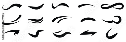 Hand drawn swoosh elements set , and swoop underline typography tails shape. Vector Illustration.