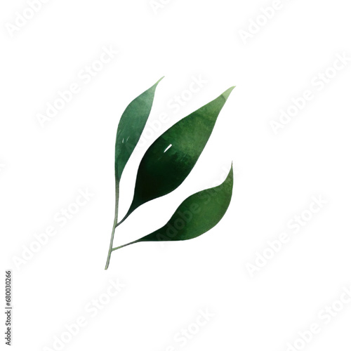 Hand drawn watercolor leaf tropical herb illustration for wedding invitation card, frame and wreath greenery branch transparent background PNG 300DPI