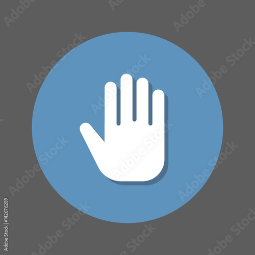 hand flat icon. Round colorful button, circular vector sign with shadow effect. Flat style design