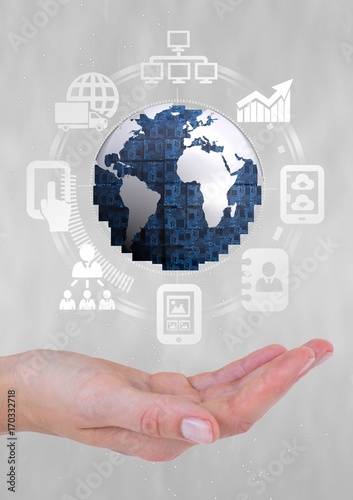 Hand holding a globe with connectors