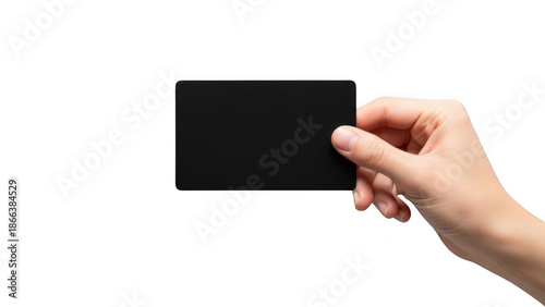 Hand holding black card isolated on transparent background