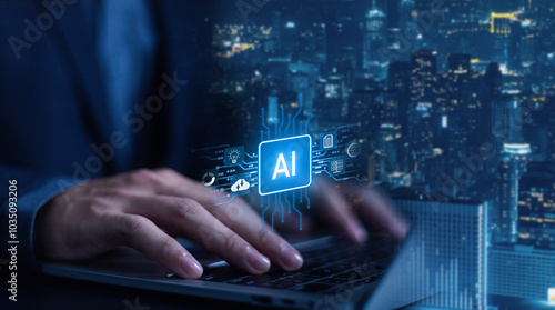 Hand holding globe with data connection network icon, Developing the changing intelligent data and global business development, Applying the digital technology of artificial intelligence.