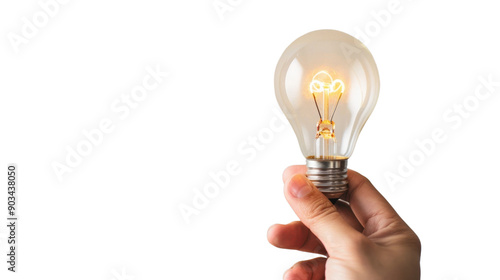 Hand holding light bulb on transparent background
