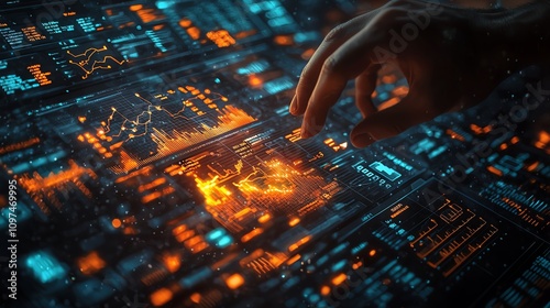 Hand interacting with digital data interface
