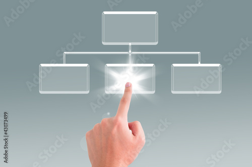 Hand pressing transparent button on the digital screen backgrou