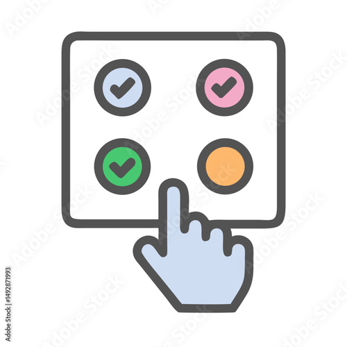 Hand selecting choices in a color coded checklist interface