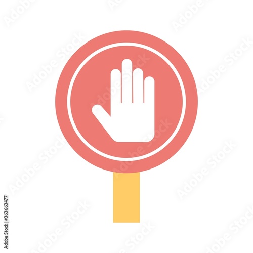 Hand stop sign icon illustration in flat design style.