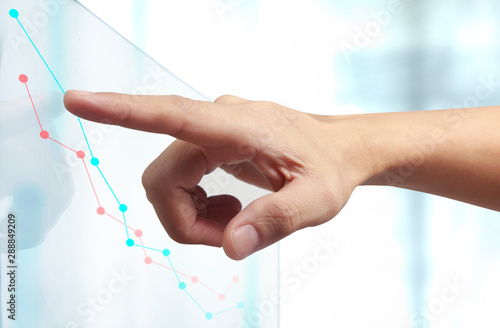 Hand touching a graphs of financial indicator chart