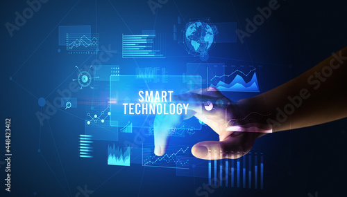 hand touching digital button, modern technology concept