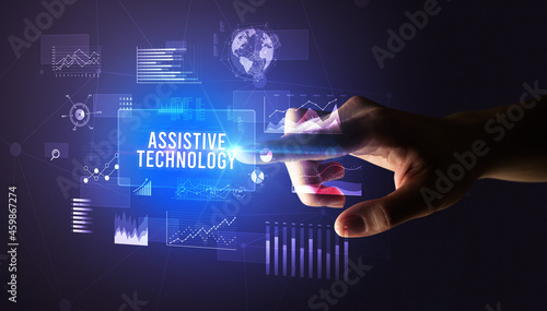 hand touching digital button, modern technology concept