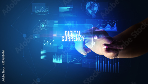 hand touching digital button, modern technology concept