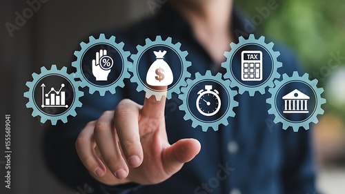 Hand touching financial success gears image