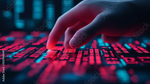 Hand touching glowing digital keyboard