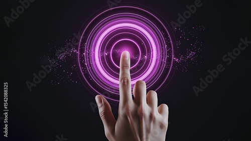 Hand Touching Purple Glowing Circular Interface finger